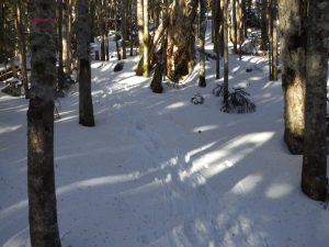 時間的に15;30になり、1950mをBCにしました。雪はうっすらですが、1泊目は1人2Lの